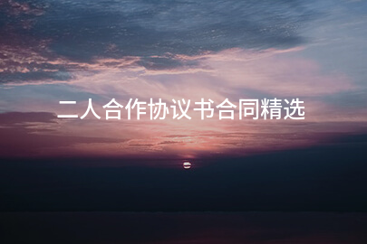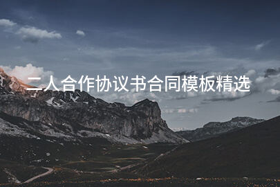 二人合作协议书合同精选 我们应该如何有条理化的撰写合同?随着人们逐渐看重法律,合同是保护合作双方权益,让合作得以顺利进行的保障之一,关于“二人合作协议书合同”的一些重要信息合同帮帮网的编辑为您精选整理了一些,希望这篇文章能够为您的工作和生活增添一些色彩!... -